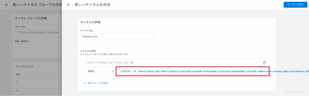 チャネルグループの設定でも、以下のように正規表現を使うことができます。
